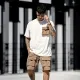 Flap Pocket TShorts Shorts White Green CoOrd Set